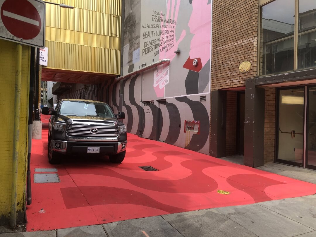 TrafficPatterns is used for the crosswalks and pedestrian channelization in retail center parking lots, enhancing both development brand and parking lot safety in an attractive and durable way. TrafficPatterns is fast to install and will maintain it’s beautiful and bold, colourful look for many years to come.