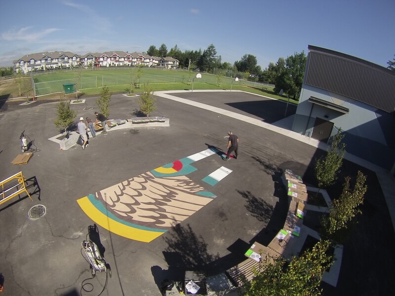 DecoMark for community branding for asphalt and concrete is a Custom Wayfinding and Horizontal Surface Markings and graphics solution with application to both asphalt and concrete. DecoMark has a wide range of potential applications including: way-finding devices, traffic guidance markings, park and pathway directional markings. It is also ideal for brand extension and enhancement in retail commercial parking lots. Engineered to last 6 to 8 times longer than paint in areas exposed to traffic and even longer in areas with only pedestrian traffic.